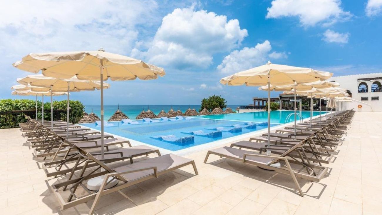 RIU Palace Zanzibar 5*е разположен на северозападното крайбрежие на Занзибар, на красивия плаж с бял пясък Нунгви. Град Стоун Таун е на 55 км от хотела. Хотелът Riu Palace Zanzibar се намира на красив плаж с бял пясък с кристални води и предлага на своите гости почивка на база ол инклузив с качеството на веригата RIU Hotels & Resorts В Riu Palace Zanzibar. На разположение на гостите са три басейна, СПА център, ресторанти и барове. За доброто насроение се грижи екип от аниматори, а вечер има музика на живо.Общите части и стаите разполагат с безплатен Wi-Fi.
