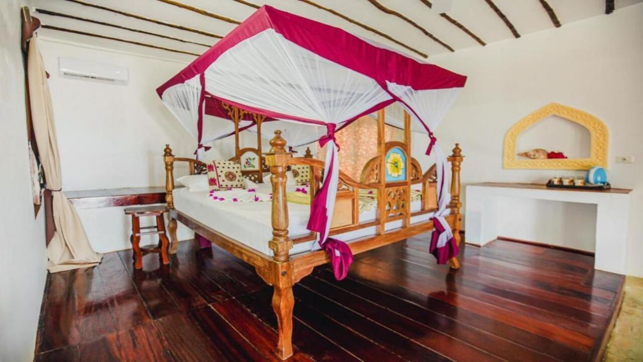 Всички стаи са обзаведени в традиционен занзибарски стил с дърворезба и естествени материали.