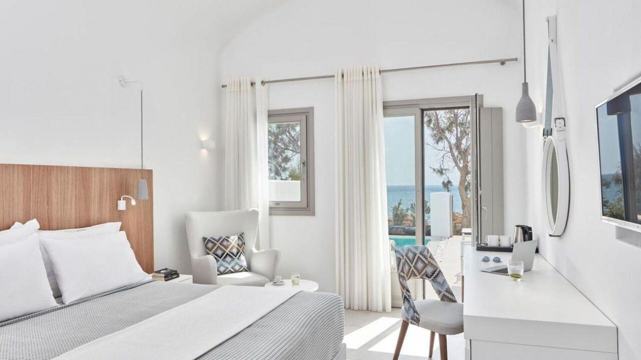 Costa Grand Resort & Spa е курорт, разположен точно на плажа с черен пясък в известното и космополитно село Камари.