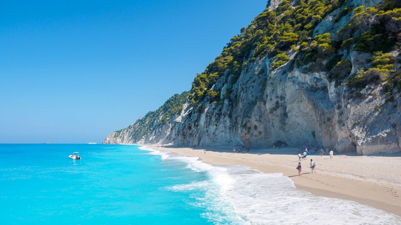 1. Егремни – Порто Кацики – Това са най-известните плажове на Лефкада. Представляват тясна ивица пясък, разположена под високи бели скали, с искрящ млечно син цвят на водата. Пауза за снимки, плуване и обяд.