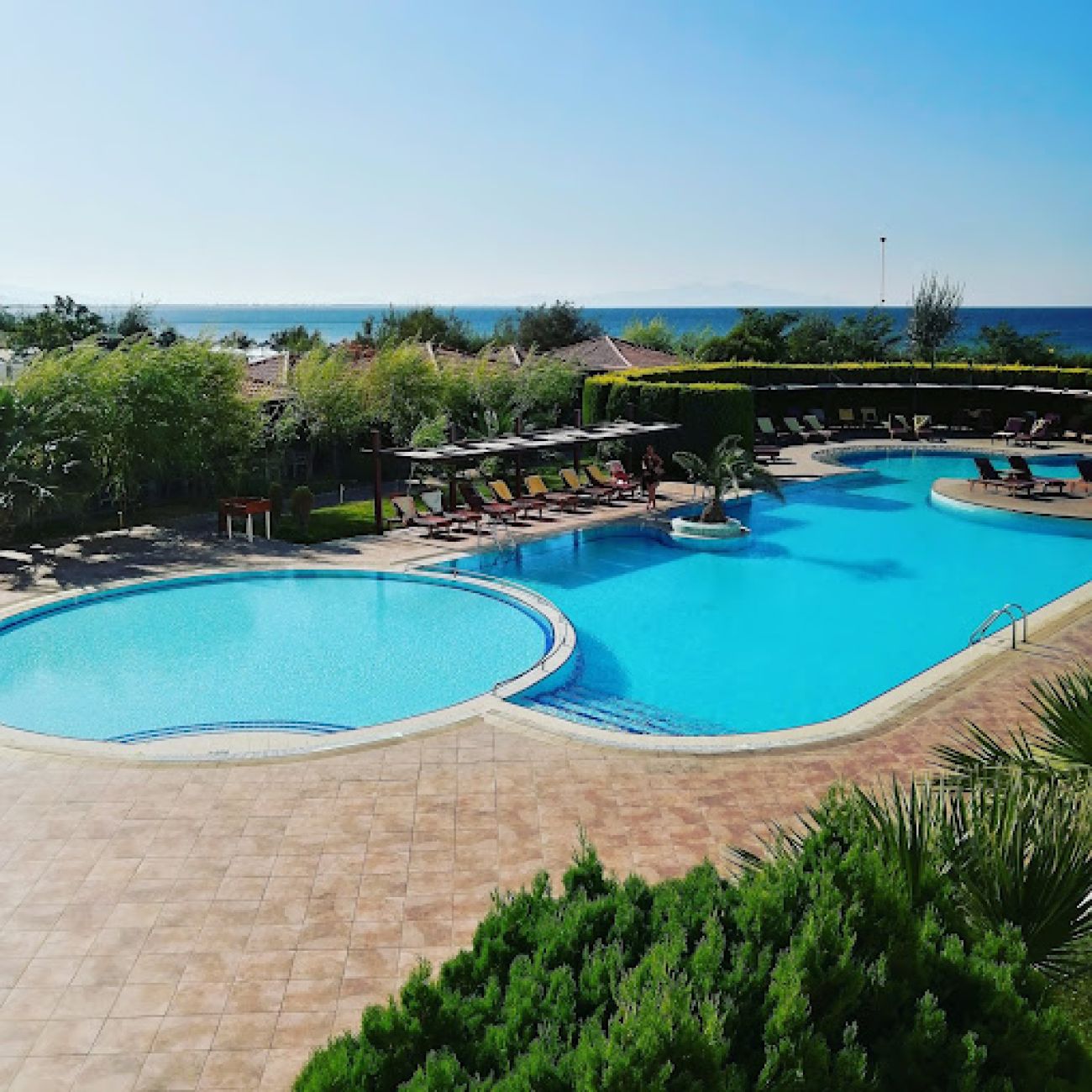 Основен ресторант, няколко бара, открит басейн, вътрешен басейн, водни пързалки, СПА център, чадъри и шезлонги на плажа и при басейна.