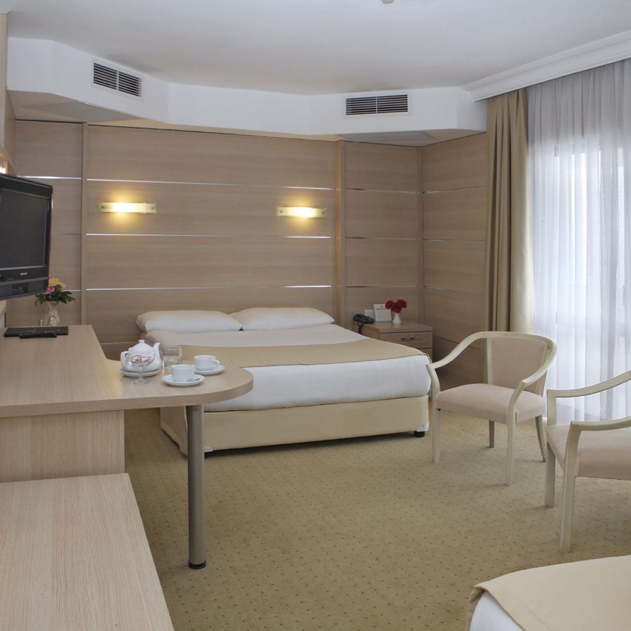 Всички стаи са оборудвани със собствен санитарен възел, климатик, сателитна телевизия, телефон с директно избиране, баня с душ или вана, сешоар, минибар, сейф.