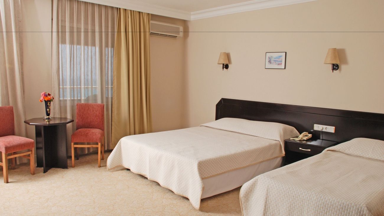 Хотелът разполага общо със 180 стандартни стаи. Всички стаи са оборудвани с климатик, телевизор, телефон, баня с душ/вана, сешоар, сейф (платен), балкон. Почистване на стаите - всеки ден.