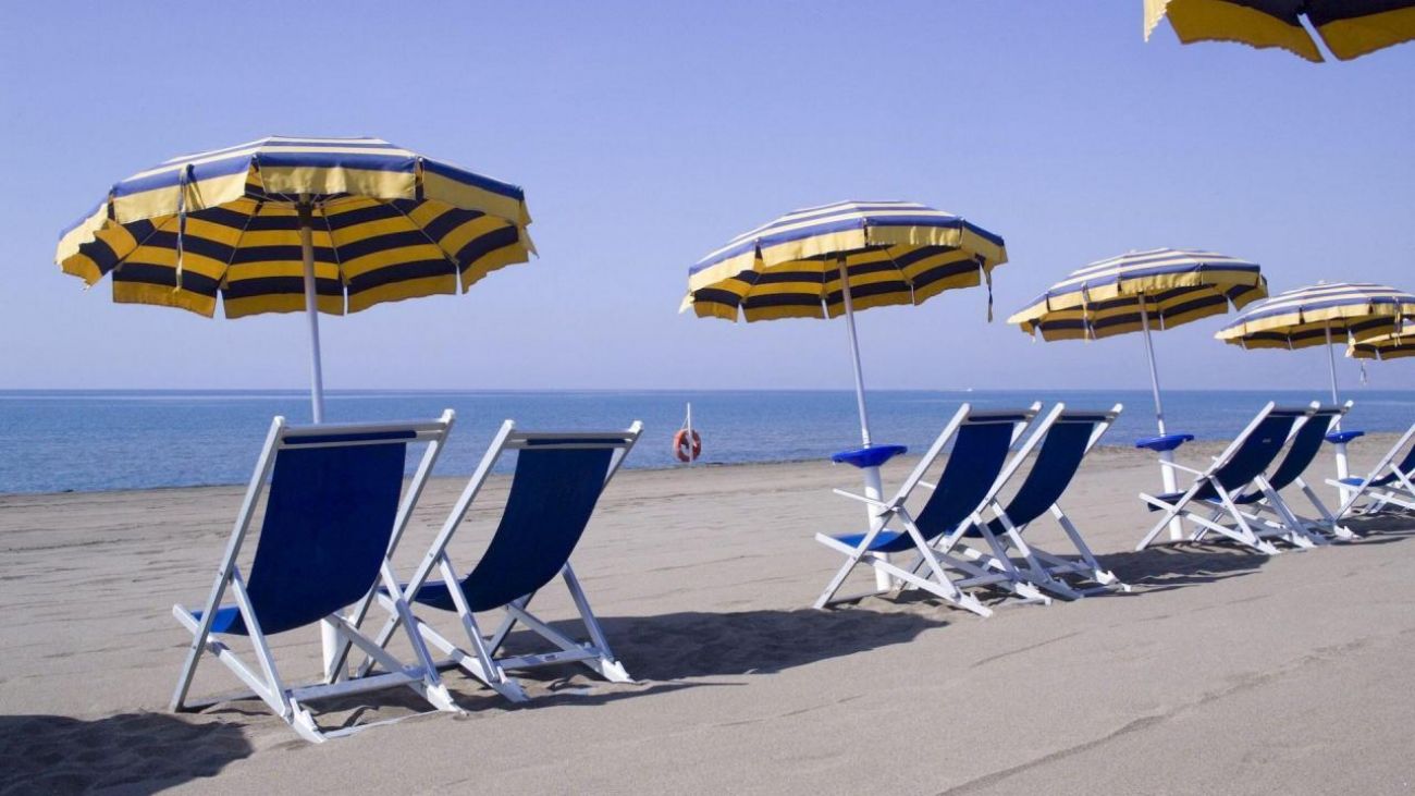 Хотелът разполага със собствен частен плаж - дълъг и широк, със ситен пясък. Чадърите, шезлонгите и плажните столове са безплатни за гостите на хотела. Номерата на чадърите се дават при настаняване и са валидни за целия престой.